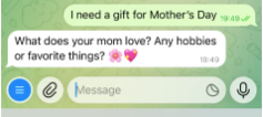 Yes! You can start asking anything thru your Telegram account. She inmediately gives you a ministore related to what you ask. If you really eed more details , then you will register for the pro functionality where she will remember what you like and your tastes. An it is only $9 a month